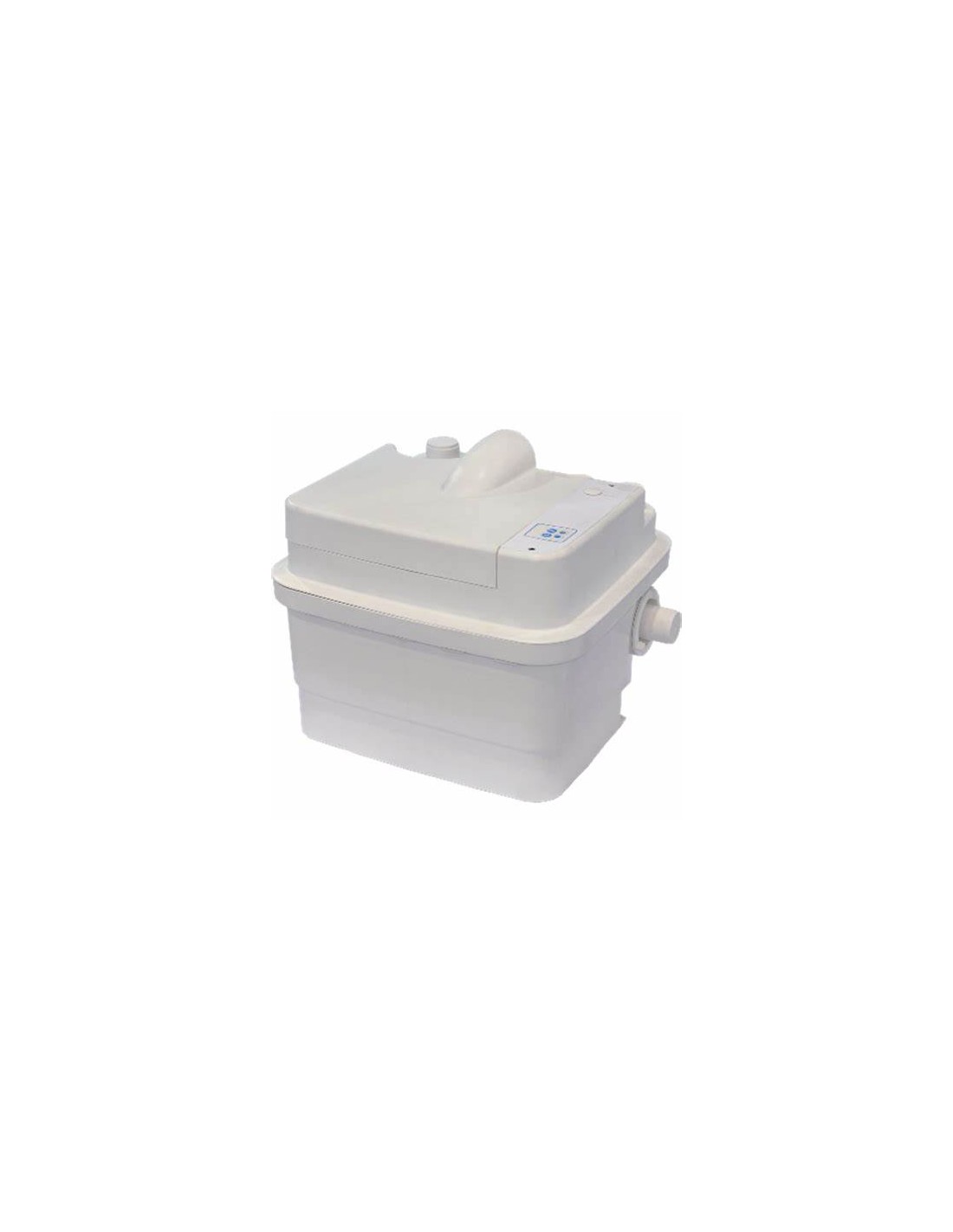 Equipo de bombeo general SANICUBIC 1 con trituradores 1 motor IP67. SANICUBIC 1 es una pequeña estación de bombeo muy compacta para evacuar todas las aguas de una casa o de un local: tanto las aguas negras procedentes de los inodoros como las grises generadas por las duchas, lavadoras, fregaderos, etc. Su tamaño reducido permite una instalación fácil y sin obra ninguna ya que se puede instalar directamente al suelo. Equipado con un potente motor de 1.500 W, este triturador-bombeador puede elevar las aguas hasta 11 metros de altura o 110 metros de distancia. SANICUBIC 1 tiene un sistema de arranque automático que funciona mediante un sistema de microswitch: al entrar en el depósito de la bomba, las aguas residuales desplazan el aire dentro de un detector, lo que arranca el motor.