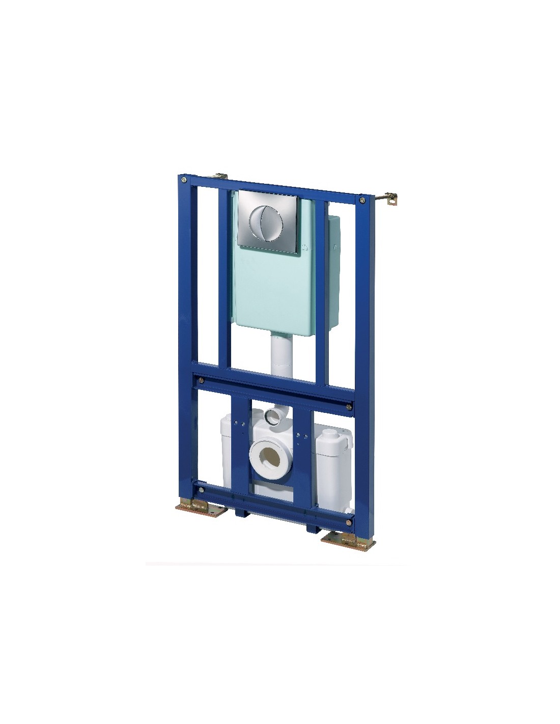SANIWALL Pro ofrece una solución global para las reformas de cuartos de baño o para crear un nuevo espacio de ducha y revalorizar su hogar. Su sistema de bastidor de hierro puede soportar hasta 400 kg de peso. De estilo universal, con una distancia de fijación estándar de 18/ 23 cm, todos los modelos de sanitarios suspendidos del mercado se pueden instalar sobre este soporte. El bastidor permite también el ajuste de la altura del sanitario. Instalar un modelo de sanitario suspendido facilitará la limpieza del cuarto de baño. Además, el sistema entero se esconde totalmente dentro de las paredes. Por esta razón es imprescindible prever una trampilla de acceso para facilitar la accesibilidad al triturador. El triturador instalado dentro del bastidor está equipado con una entrada superior para conectar y evacuar un lavabo. 2 entradas laterales bajas evacuan las aguas de una ducha y de un bidé. El aparato puede evacuar hasta 5 metros en vertical y 100 metros en horizontal (con una pendiente de 1%). SANIWALL Pro está también equipado con una cisterna de doble descarga de 3 o 6 litros.