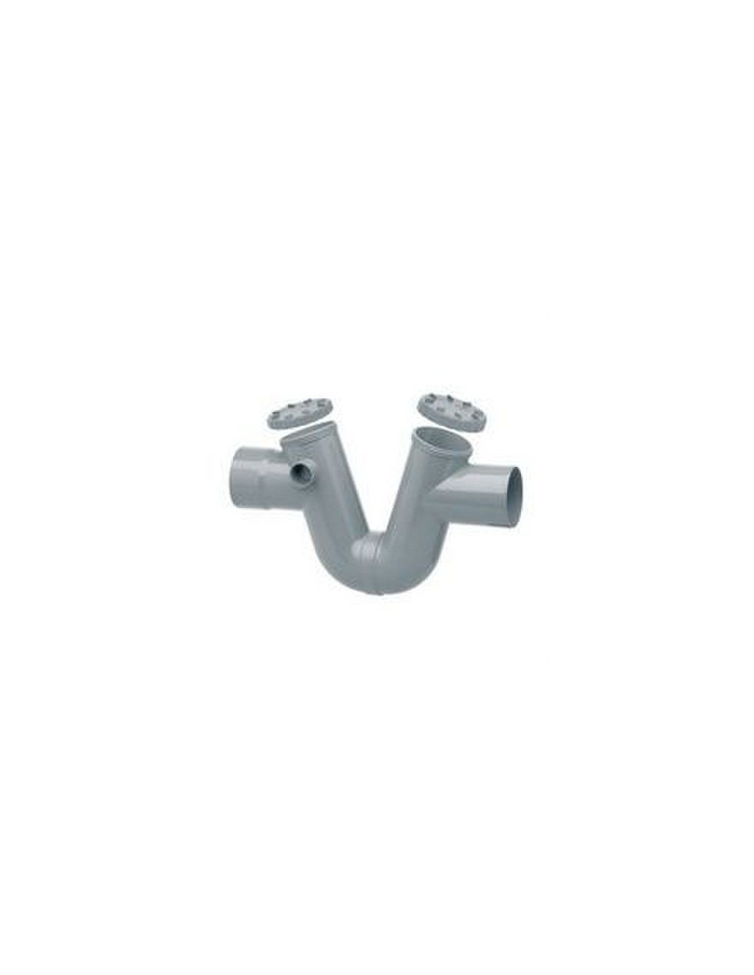 Sifón con registro para sistemas de evacuación, fabricado en material plástico PVC de color gris.