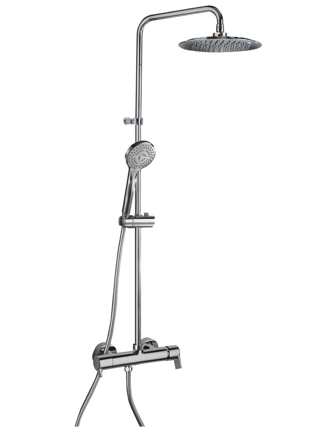Conjunto monomando de gran ducha e inversor integrado, con columna fija, accseorios ABS