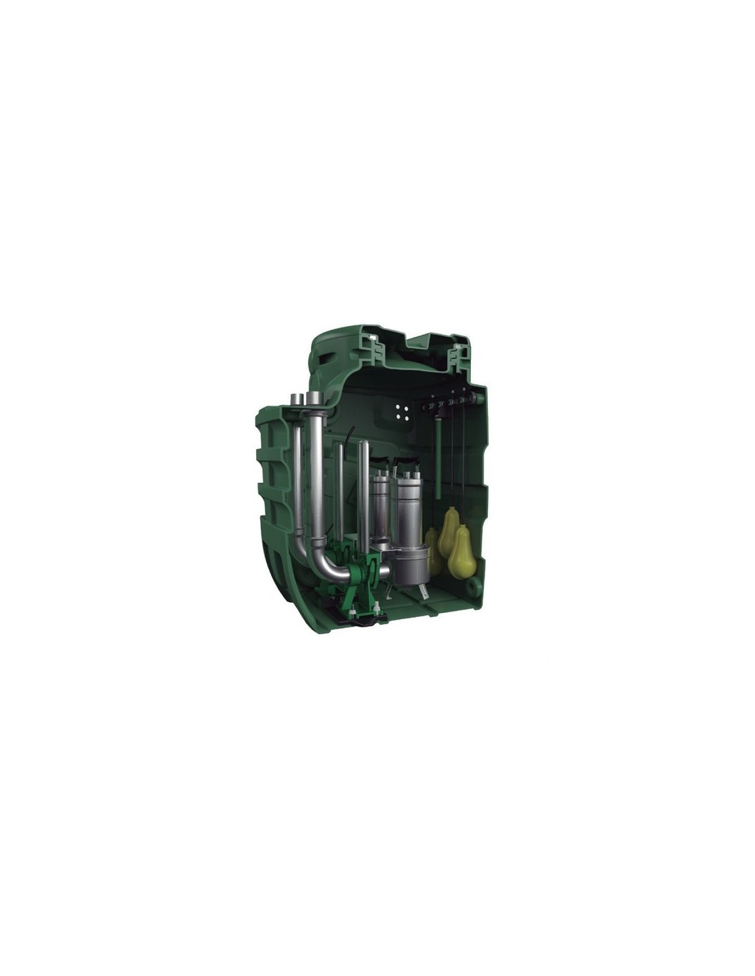 Estación automática Fekafox , para recolectar y elevar aguas limpias, pluviales y residuales de lavadoras, lavabos e inodoros en sistemas instalados a un nivel inferior al del alcantarillado, en lugares como garajes o sótanos.